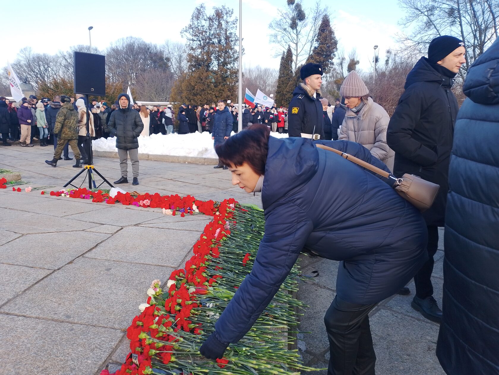 Глава региона, сотрудники ведомств, представители различных организаций и жители региона прошли колонной по Гвардейскому проспекту к мемориалу, где возложили цветы и венки к Вечному огню, а также почтили минутой молчания память павших защитников Родины.